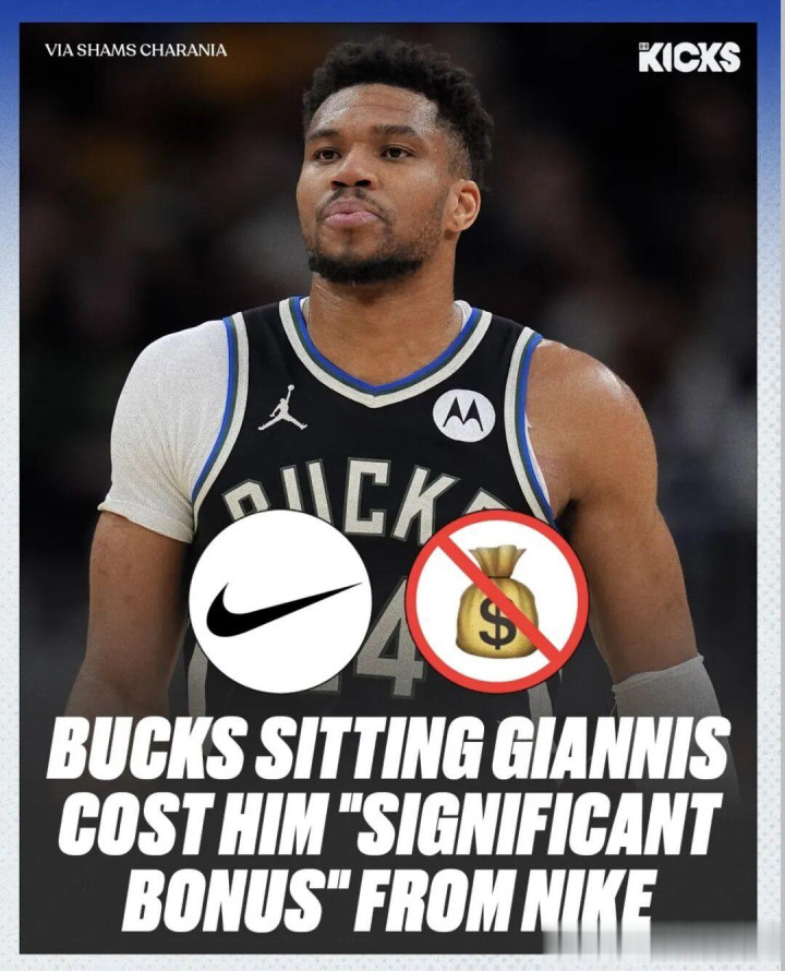 Shams还透露了字母哥不满雄鹿的主要原因,雄鹿让字母哥休战的决定导致他错失了耐克代言合同中一项巨额奖金条款——该条款要求他至少出战41场比赛才能触发。