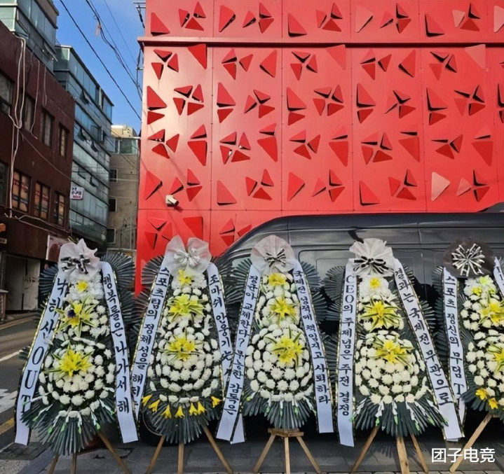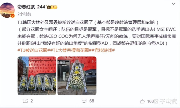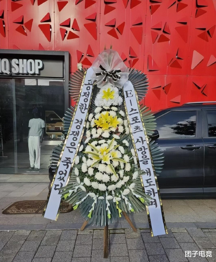 可是T1粉丝不管你有什么理由,今天他们就开始直接上强度了,在T1的大楼下摆花圈。