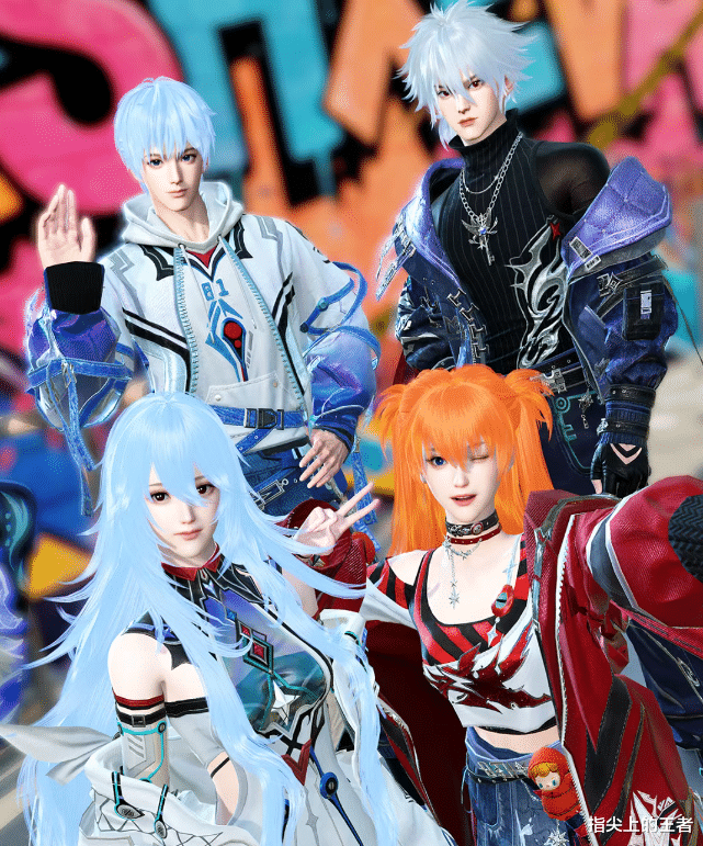为了满足玩家对联动的期待,官方还特意设计了四位角色的二创外观,是朋克现代风格的运动服饰,可裁剪外套可染色,给了销冠更多发挥的空间。