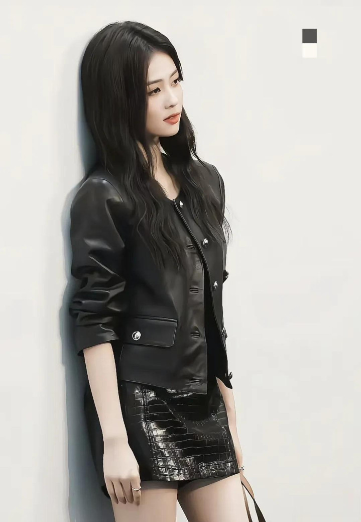白鹿一身酷飒黑系穿搭,