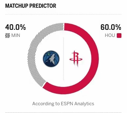 冲西部第四关键一战? ESPN预测火箭队对阵森林狼赢球概率60%!