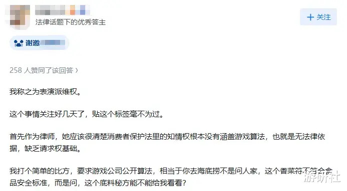 因此也有法律人士对此事持强烈否定态度,认为要求游戏公司公开算法,就像要求餐饮企业公开菜谱、秘方,比较不符合常理。