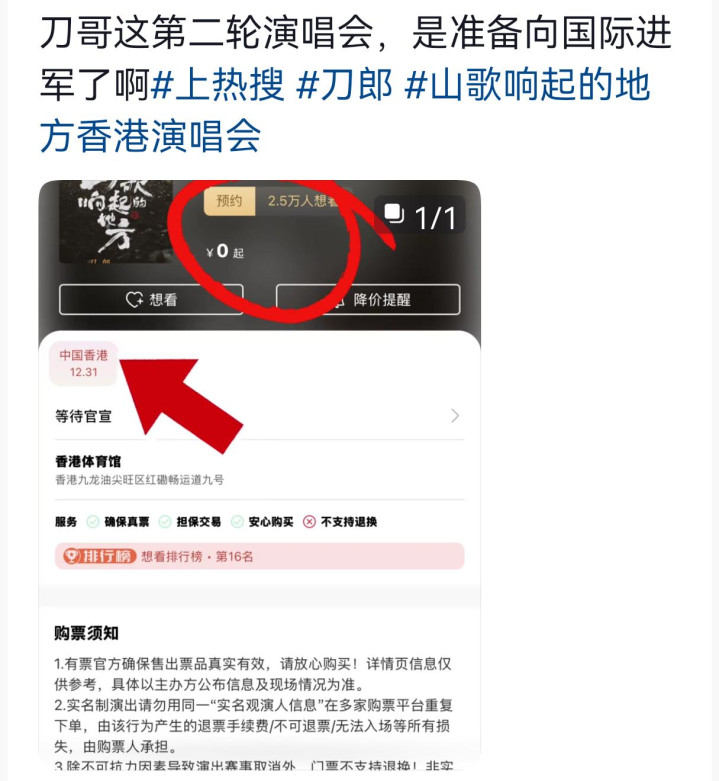 刀郎要去香港开演唱会?这几天你在短视频平台不知道有没有留意过这样的一个说法。有的主播甚至还专门出镜信誓旦旦的说,说某票务网站已经出现了即将售票的信息,甚至连具体的时间地点都有。类似的这种消息,哪怕你现在在平台上搜索一下,应该也能够看到。